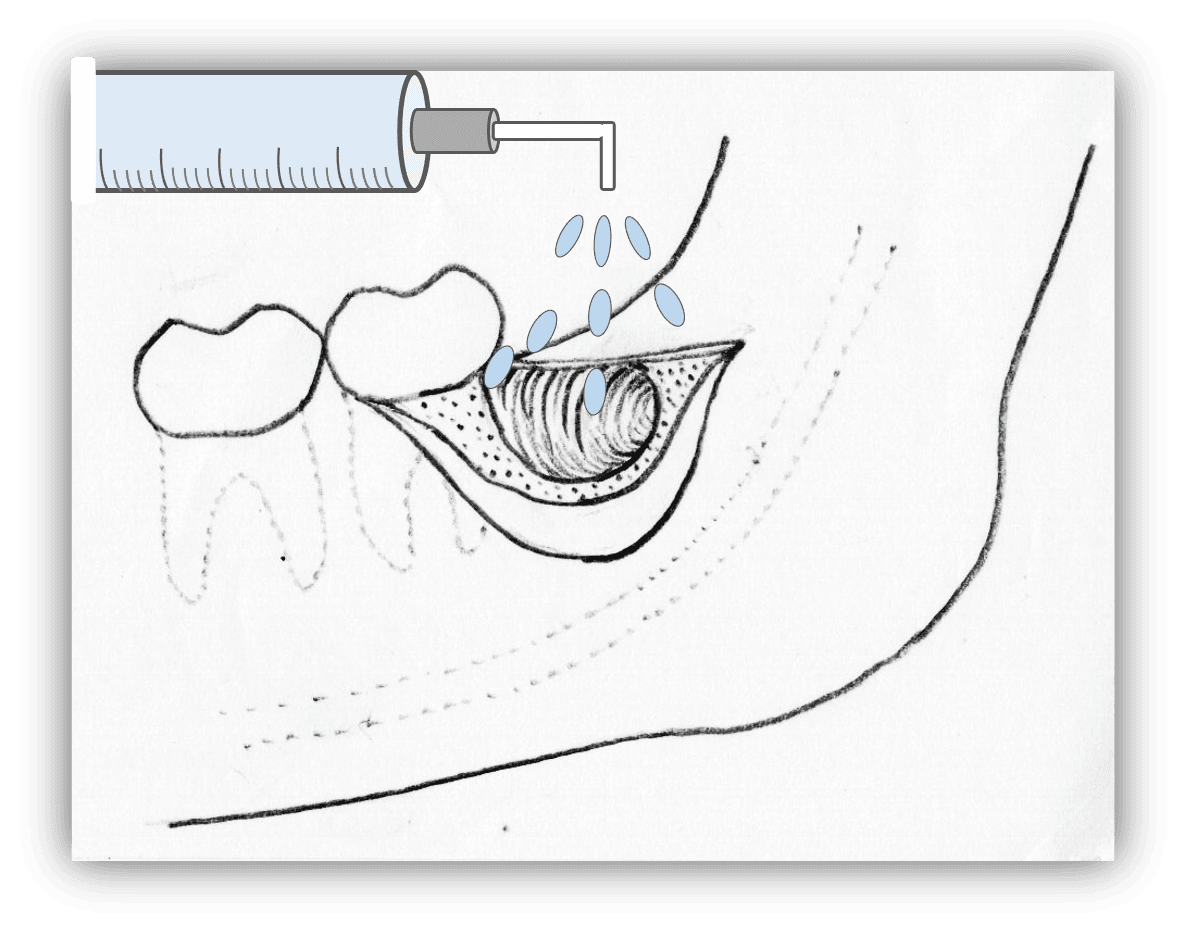 1.親知らずの周囲の歯肉に麻酔の注射を数ヶ所行います。